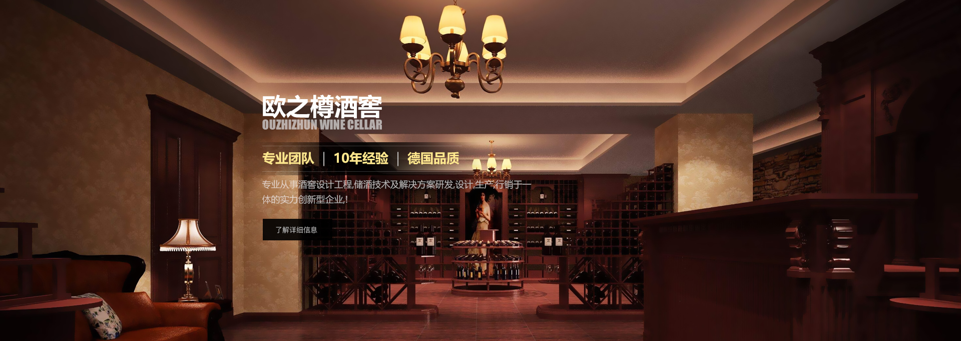 歐之樽酒窖專業的設計團隊,通過學習歐美成功酒窖的經驗與國內市場相結合,使得我們的設計充滿著歐美氣息的中國風。能讓你在緊張的城市氛圍中找到在大自然 中享受美酒的感覺。歐美進口的全自動控溫控濕系統既穩定又方便,
